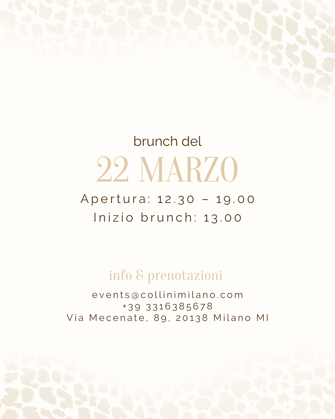 Orari: dalle 12.30 alle 19.00 – inizio brunch ore 13.00.
