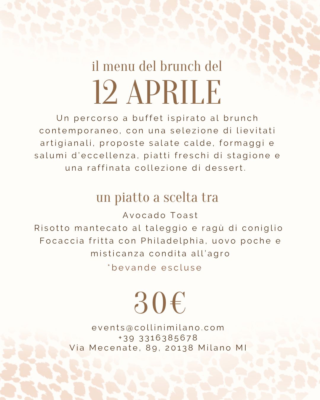 Per questa data, lasciati conquistare da un brunch pensato per sorprendere: un percorso a buffet ispirato al brunch contemporaneo, con lievitati artigianali, proposte salate calde, formaggi e salumi d’eccellenza, piatti freschi di stagione e una raffinata selezione di dessert.
